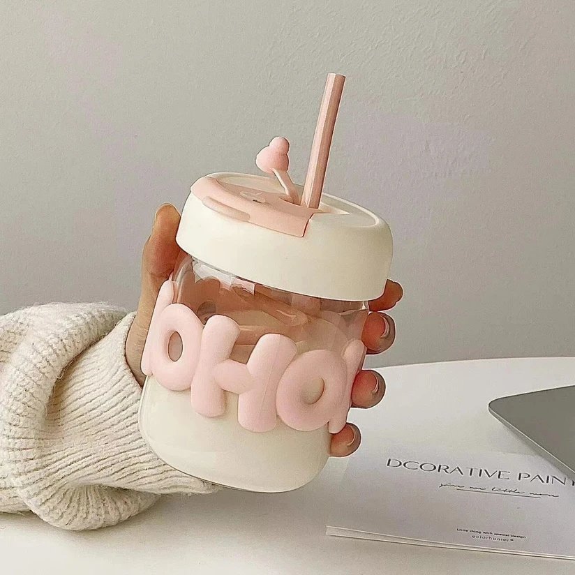 Soft Girl Aesthetic: Cream & Pink Bubble-Letter Glass Cup