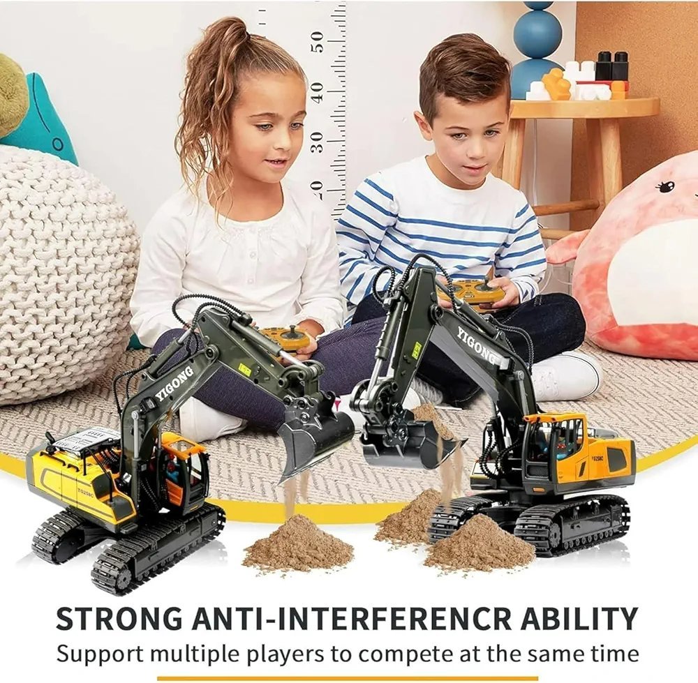 1/20 Scale: The RC excavator has a 1/20 scale, with vivid shapes and bright colors, which brings you a vivid play experience.