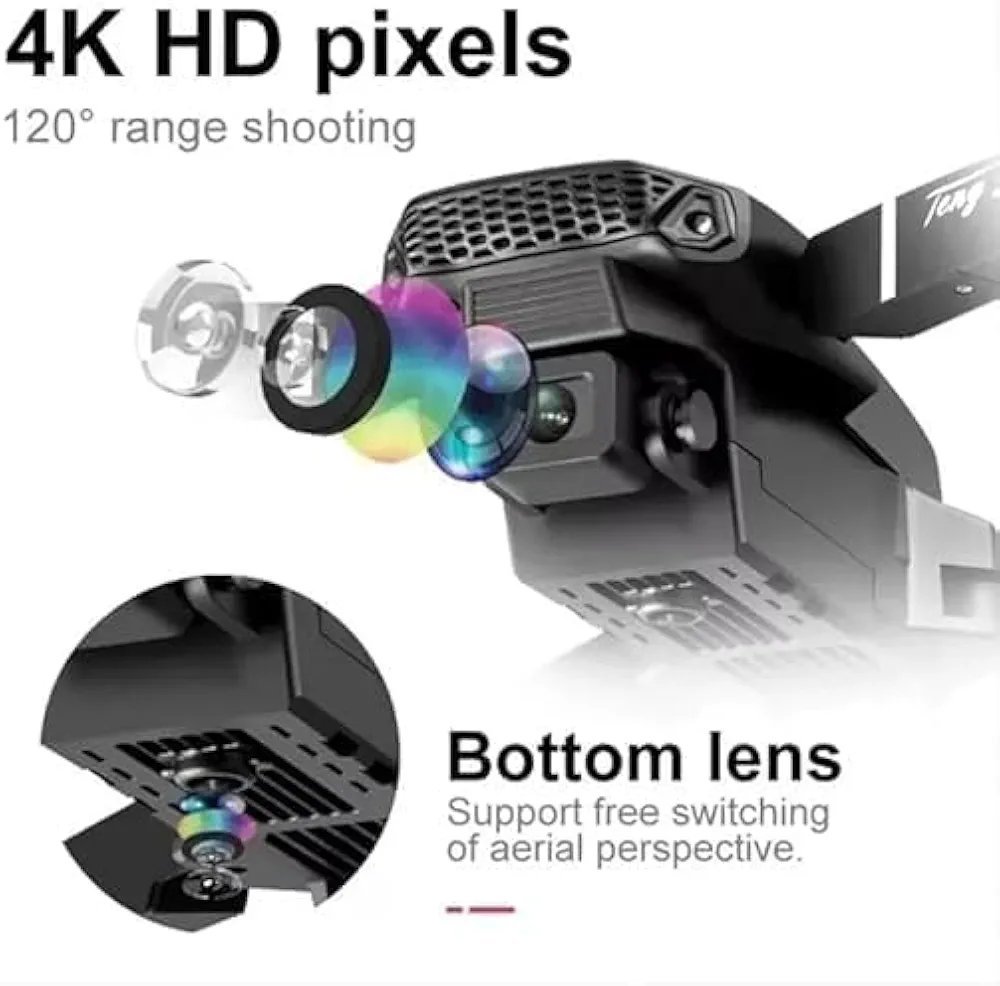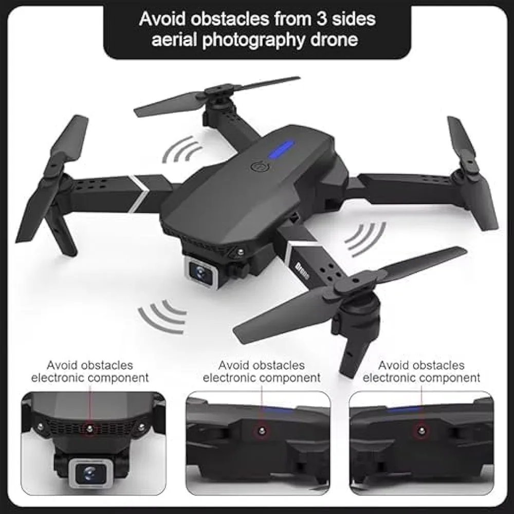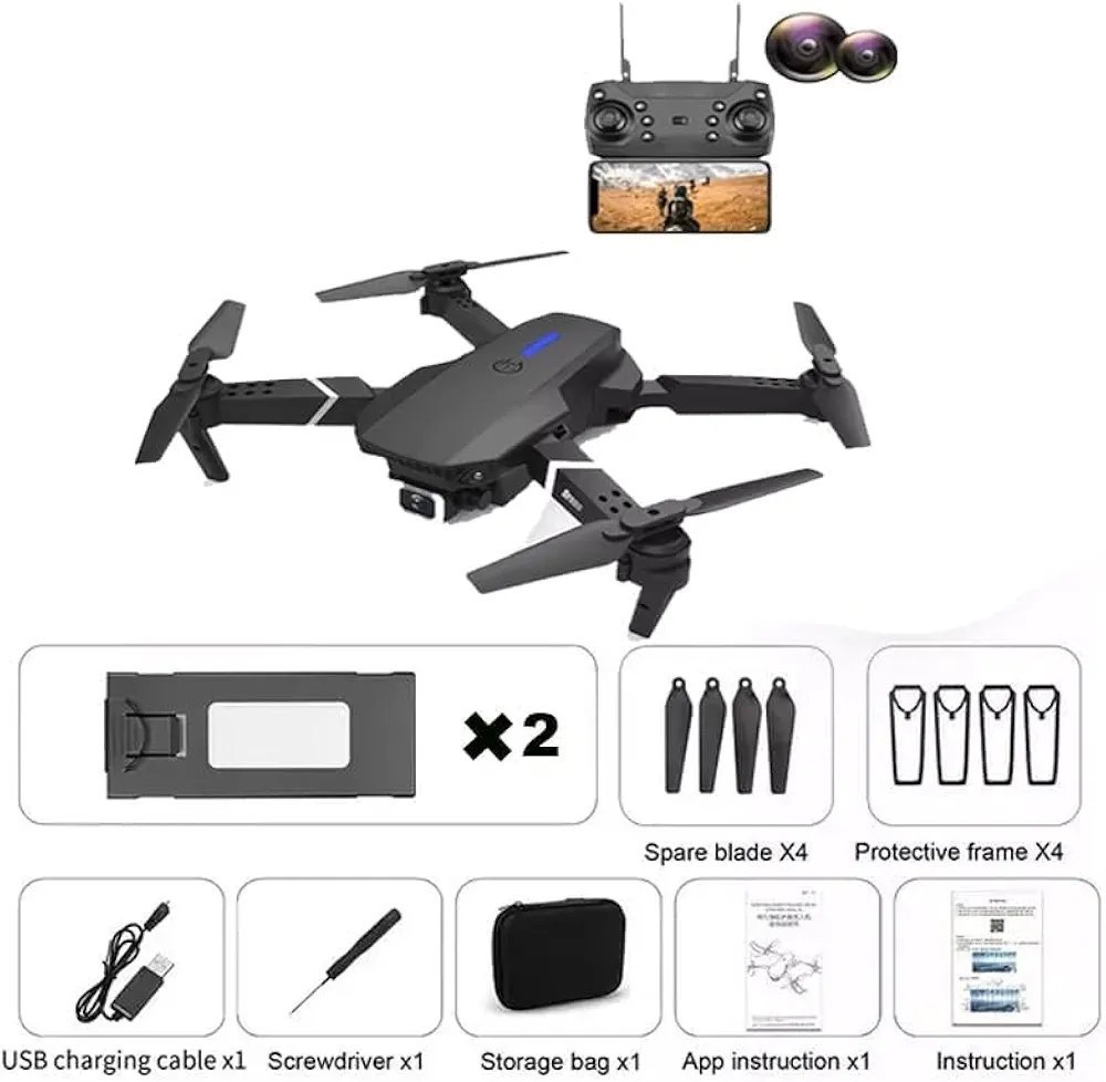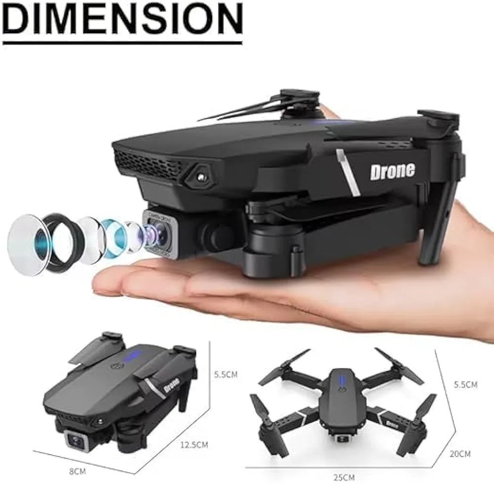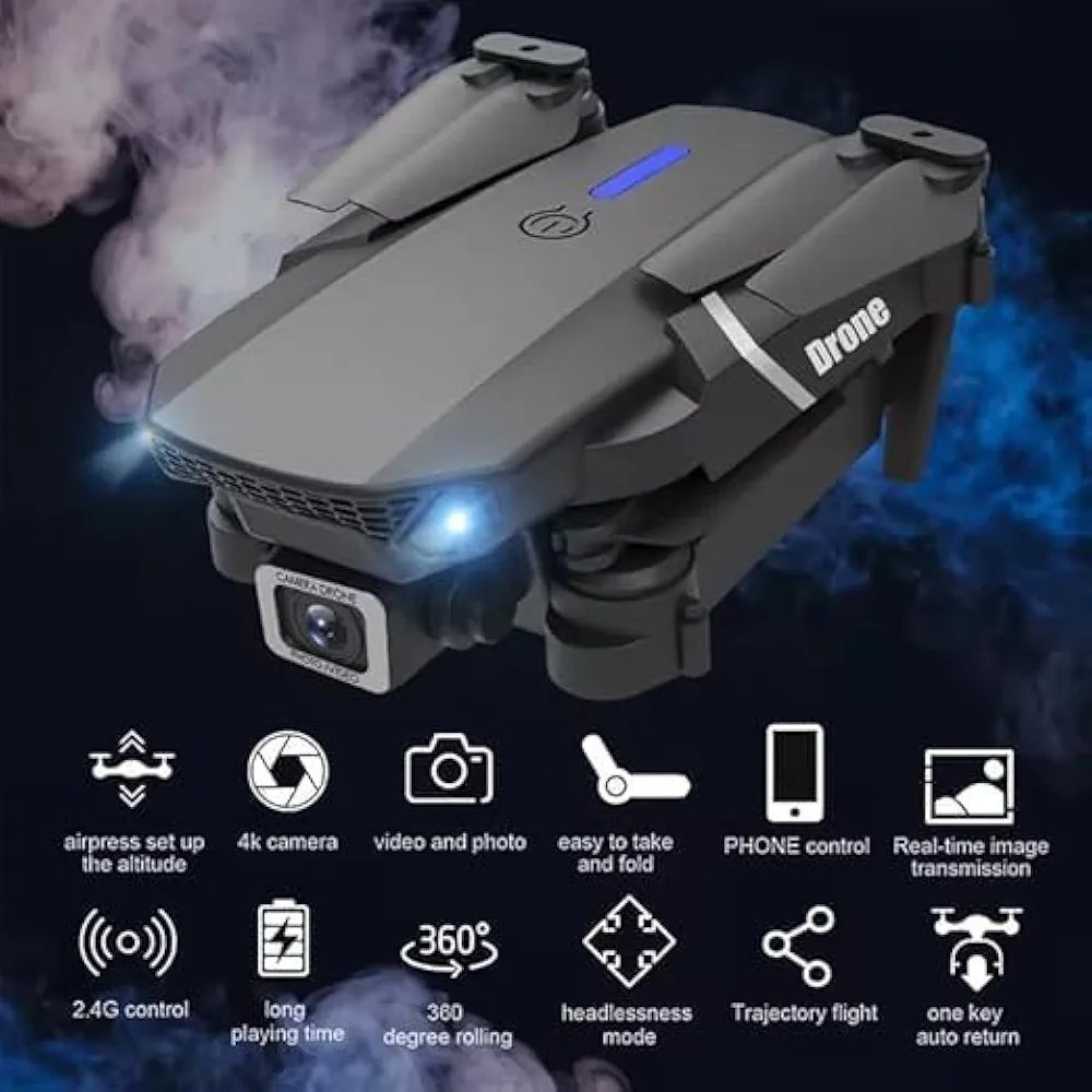 WiFi FPV Live Video, Altitude Hold, Headless Mode, Auto Return, App Control (Black) E88 Foldable Drone with 4K HD Camera, App Control, 360, Roll, Long Battery Life, 14+ Age Group