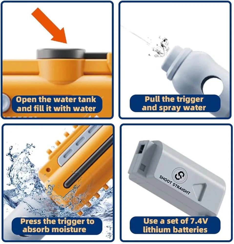 Automatic Electric Shooting – High-power motor gives fast continuous water spraying so kids can enjoy non-stop water battles without manual pumping.