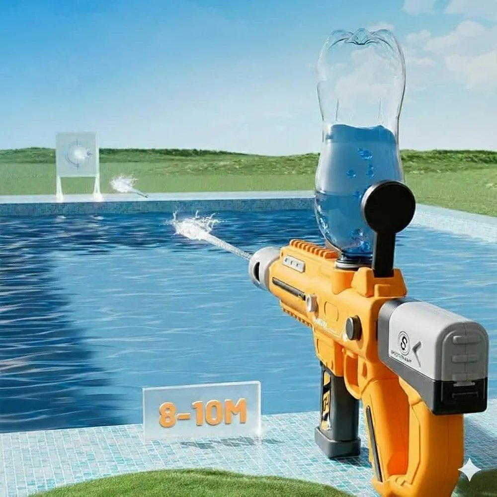 Electric Automatic Water Gun for Kids & Adults | Long Range 8–10m, Large Capacity Tank, Fast Trigger Fire, Perfect for Holi Festival & Summer Outdoor Fun.