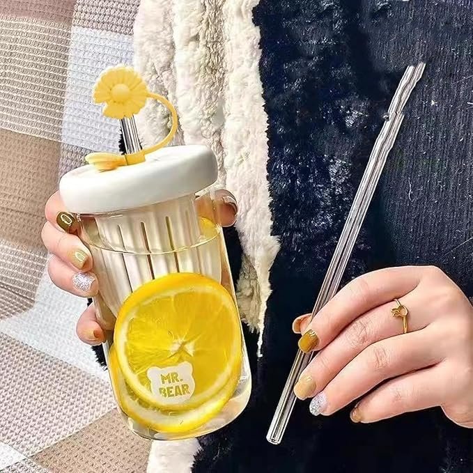 Glass Tumbler with Fruit Infuser Lid and Straw