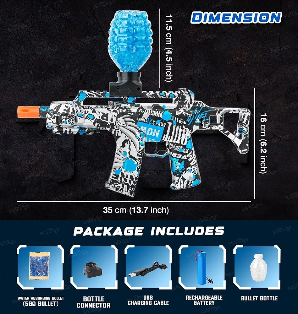 Zest 4 Toyz Shooting Gun for Kids | Foam Blaster Gun for Outdoor Activities with 500 Bullets | Electric Water Bomb Gun with Rechargeable Battery for Boys and Girls