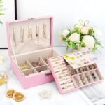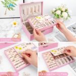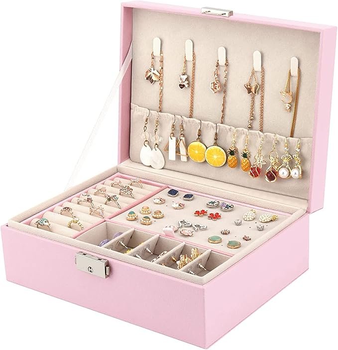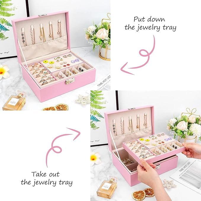 SQUICKLE Portable Travel Jewellery Storage Box With Lock || 2 Layer Jewellery Box Organiser || Jewelry Storage Case With Removal Tray For Rings, Earrings, Bracelets, Necklaces (Pink) (Pack Of 1)