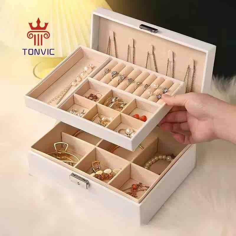 - Jewelry boxes are made of high-quality leather fabrics and equipped with safety locks.