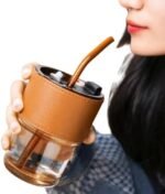 It comes with a durable lid and reusable stainless steel straw, making it perfect for coffee, tea, juice, smoothies, or iced beverages. The transparent glass body lets you easily see your drink level, while the protective sleeve helps prevent slipping and heat transfer.