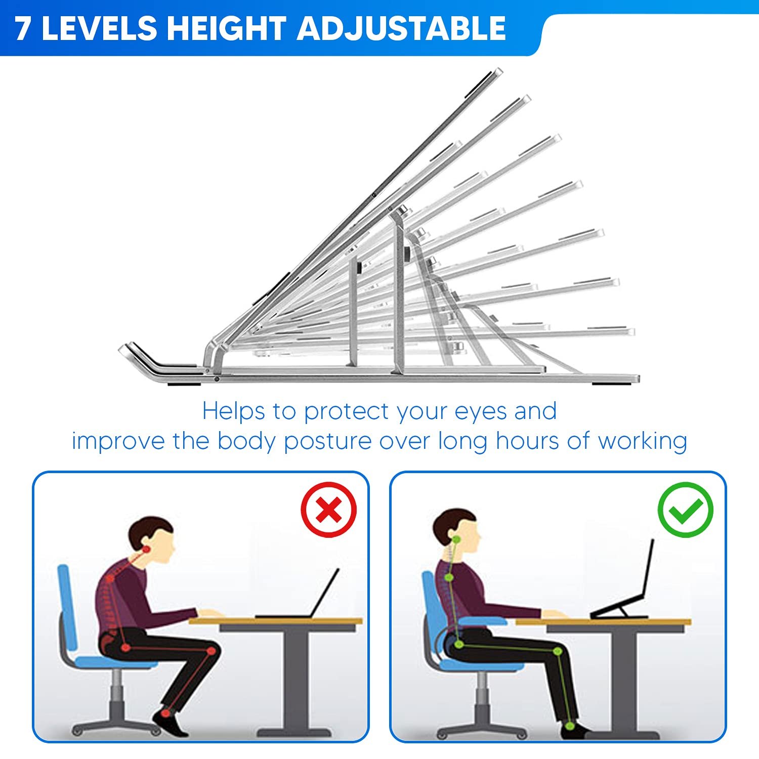 - 🤝Made for Your Comfort: Are you craning your neck over your laptop right now? Stop. Our laptop holders offer 7 easy angle adjustments to keep your device at the eye-level you prefer. With no strain on your eyes, neck, or back, this laptop riser supports healthy posture and productive work.
