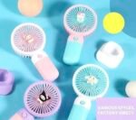 Cute and compact handheld mini fan with cartoon design, easy to carry and perfect for quick cooling at home, school, or on the go.