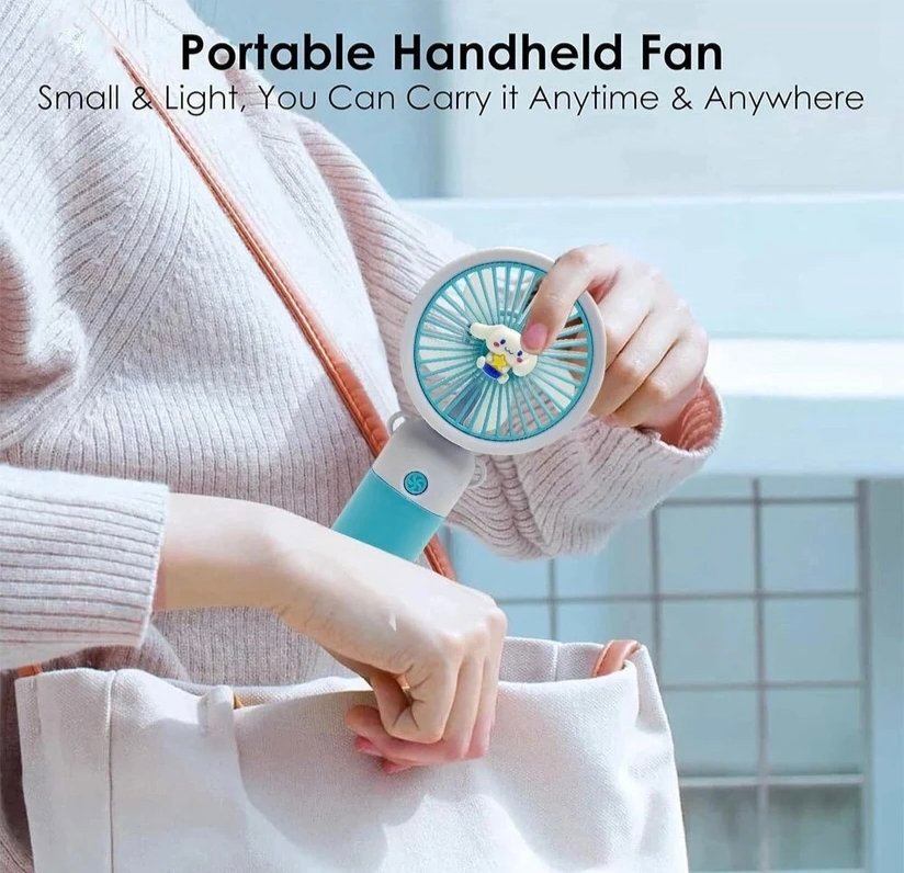 Stay cool in style with this cute handheld mini fan, designed with adorable cartoon themes and soft pastel colors. Compact and lightweight, it is easy to carry in your bag or hold comfortably in your hand, making it perfect for travel, school, office, or outdoor use. The fan features a simple one-button operation and a smooth grip handle for convenient use. Its portable design provides a refreshing breeze anytime, anywhere while adding a fun and playful touch to your everyday essentials.