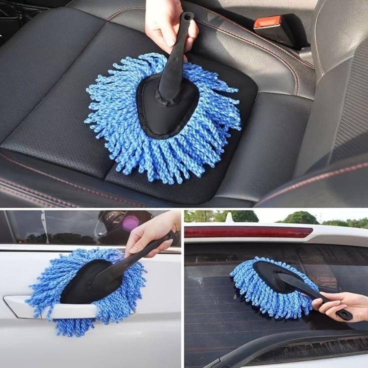 - CAR DUSTER INTERIOR – Mini car duster helps in cleaning difficult to reach places, car dash duster fits for cleaning car interior, console, electronics, dashboards, buttons, steering wheel, leather seat , head light, windows and household products sunch as computer desk, keyboards, countertops, closets, mirrors, pictures and decor on the walls, shelves and so on.