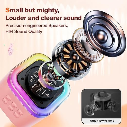 - Stunning Sound Performance: Mini karaoke machine built-in higher power speaker, make the sound more stereo, louder and clearer. With strong anti-interference and noise reduction, it’s a ideal gifts toys for unleashing child’s singing or speaking talents