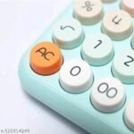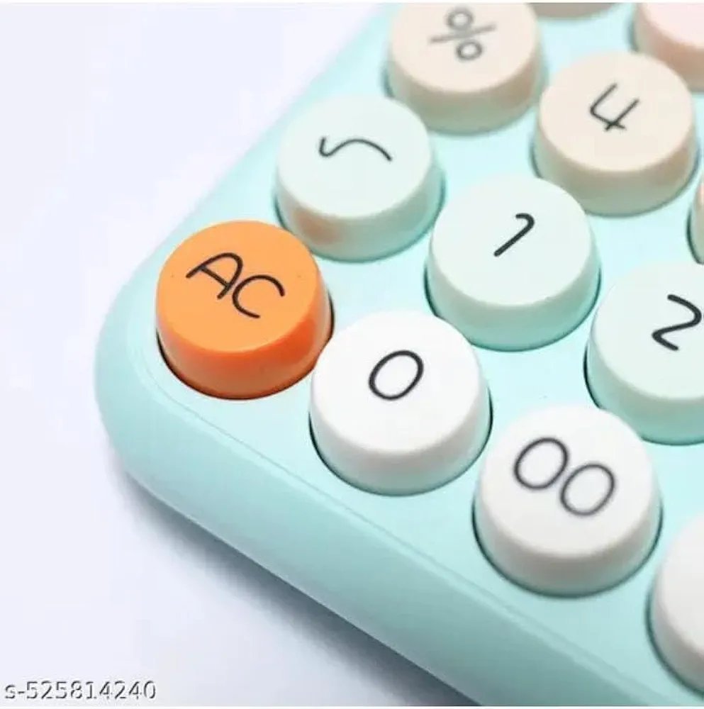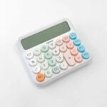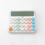 DESIGN: Sleek desktop calculator featuring a modern aesthetic with pastel-coloured keys and a clean white housing for stylish functionality