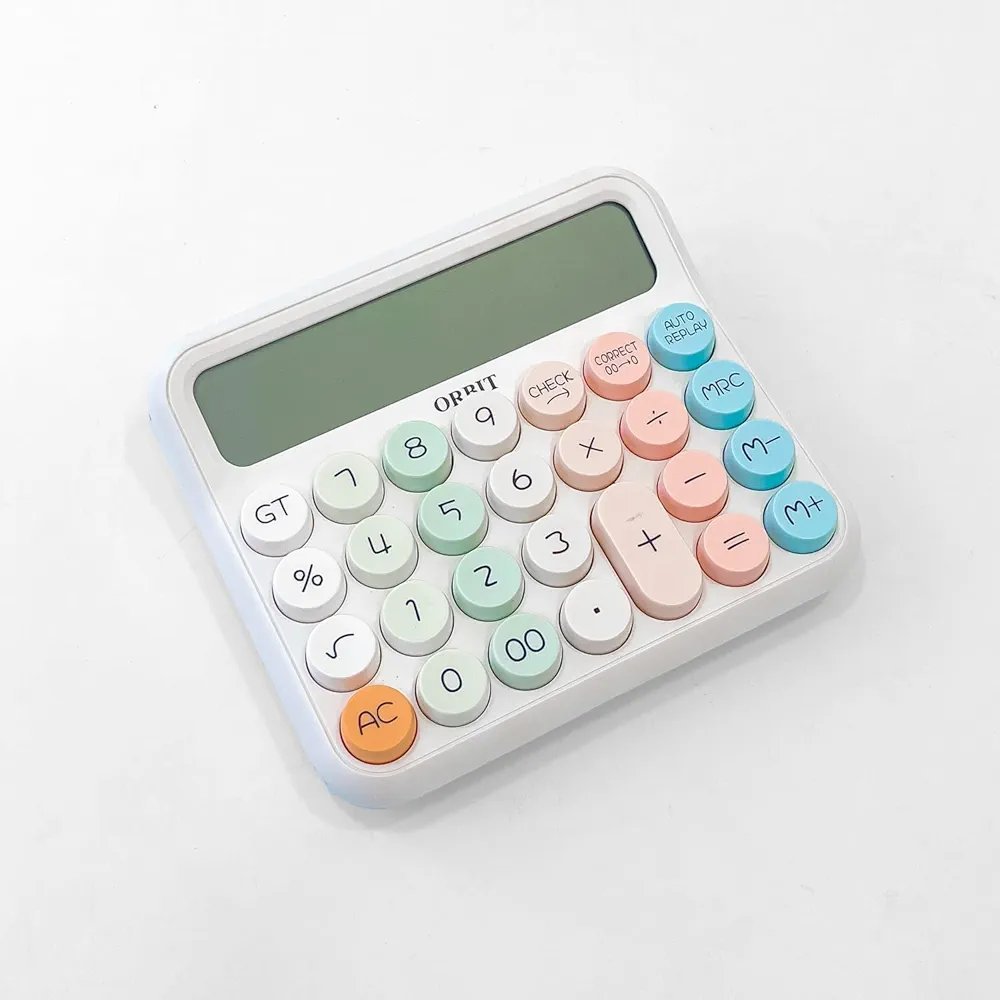 Ortis Desktop Calculator with LCD Display, Pastel Coloured Keys, Auto Replay Function, 1 AAA Battery Included
