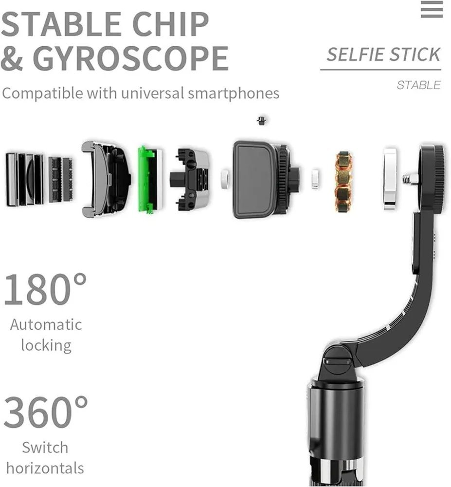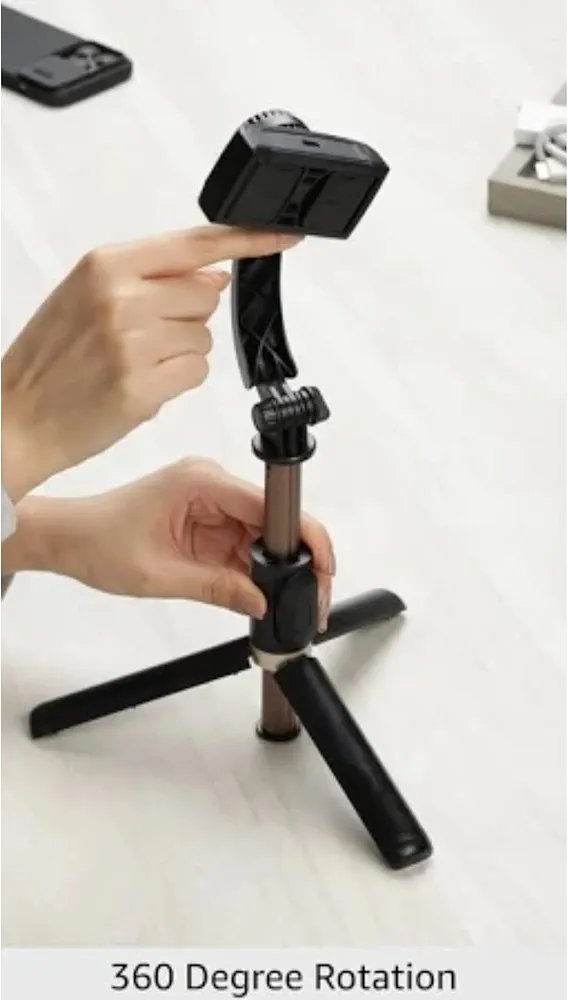 MULTIFUNCTIONAL DESIGN: Combines gimbal stabiliser, extendable selfie stick, and tripod in one portable device for versatile shooting options and hands-free operation
