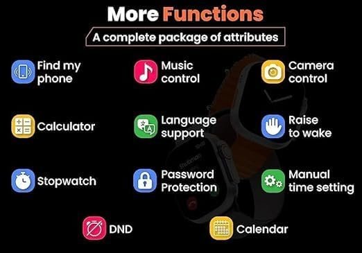 - Bluetooth Calling Smartwatch – Enjoy seamless connection and Bluetooth calling through T-800 Ultra Smartwatch.
