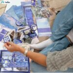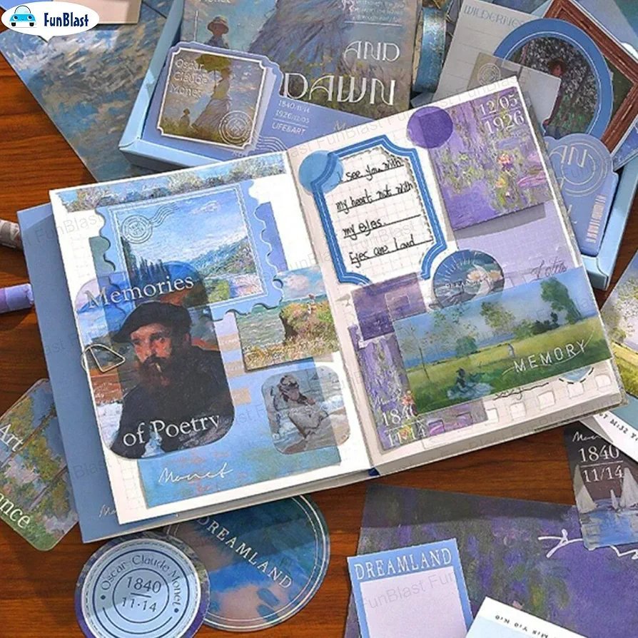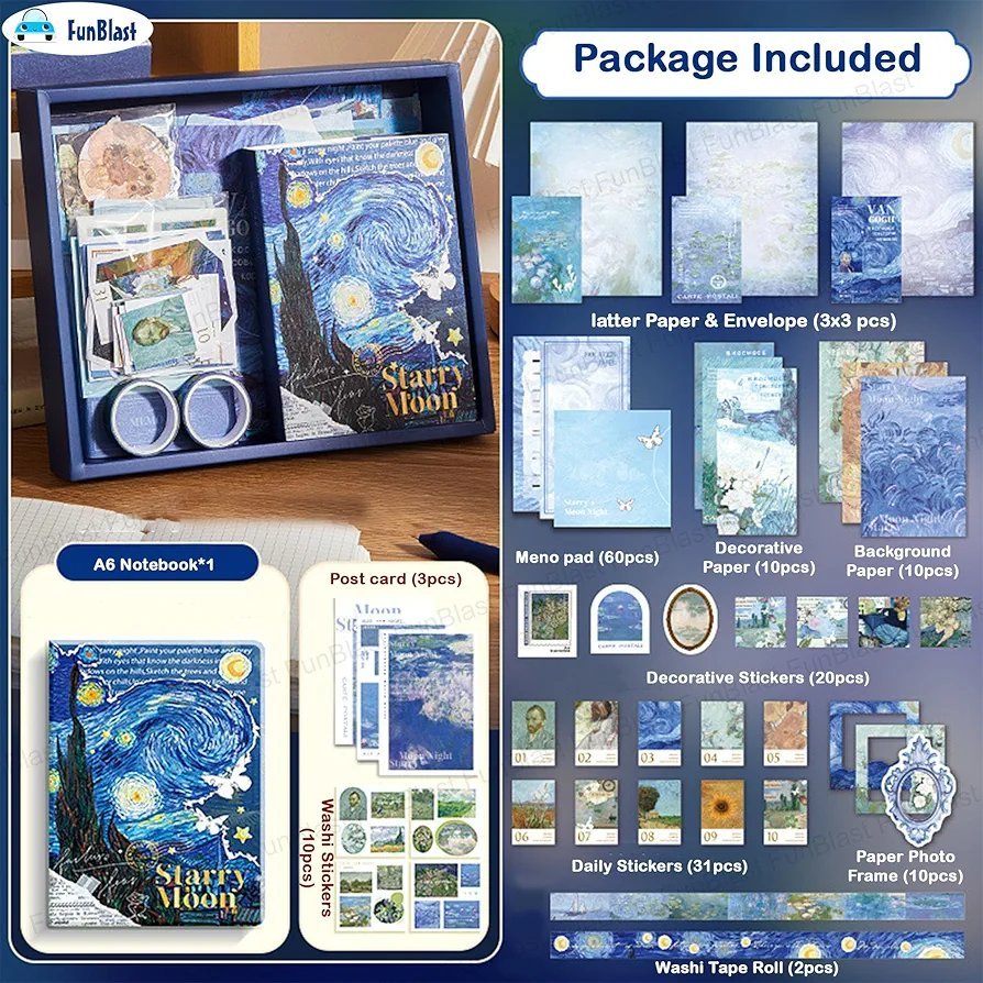 FunBlast Aesthetic Scrapbooking Kit – 163 Pcs Vintage Journal Supplies with Paper Photo Frame, Washi Tape Roll, A6 Grid Notebook, DIY Craft Journaling Gift for Teen, Girl, Adult (The Starry Night)