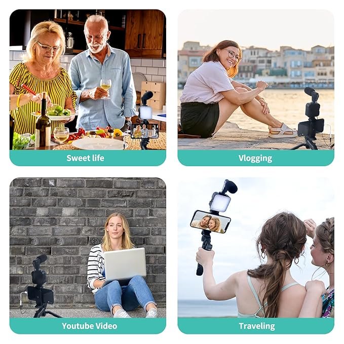AMESEDAK Vlogging Kit for iPhone – Lightning Compatible Video Vlog Kit – Accessories: Phone Tripod, Phone Mount, LED Light and Shotgun Microphone – for YouTube Starter Kit or iPhone Vlogging Kit